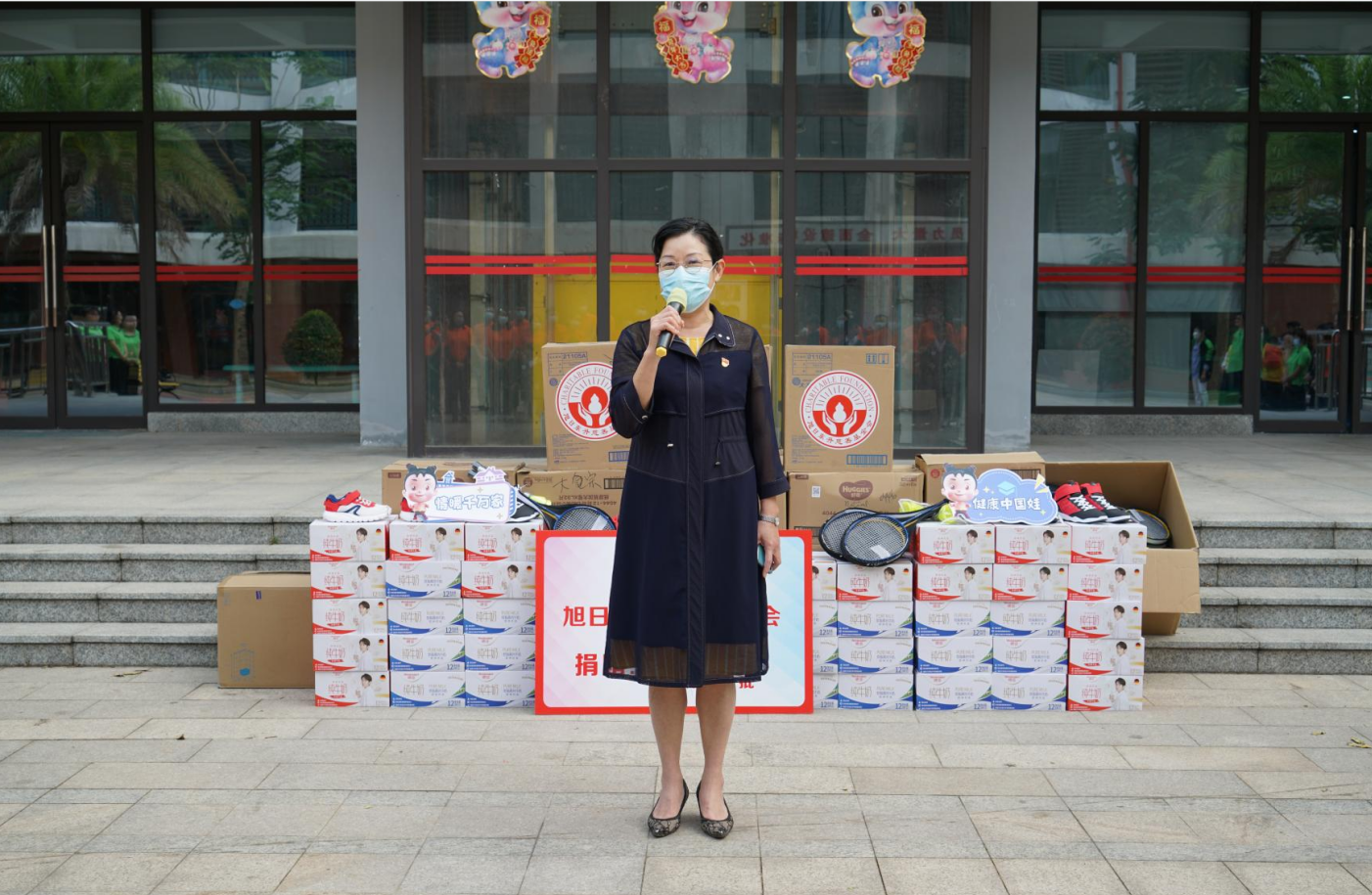 紧接着,海口市社会福利院院长唐凤英致辞。她首先感谢尊龙药业集团、旭日东升慈善基金会7年来,对海口市社会福利院的持续关注和无私帮助。她特别提到,2022年由尊龙药业集团捐资建设的“爱·护”项目医护隔离观察区,帮助福利院的孩子们渡过了疫情防控的难关。今年,熟悉的尊龙人又来到了福利院陪伴孩子们,给予了这里的小朋友们爱的力量。